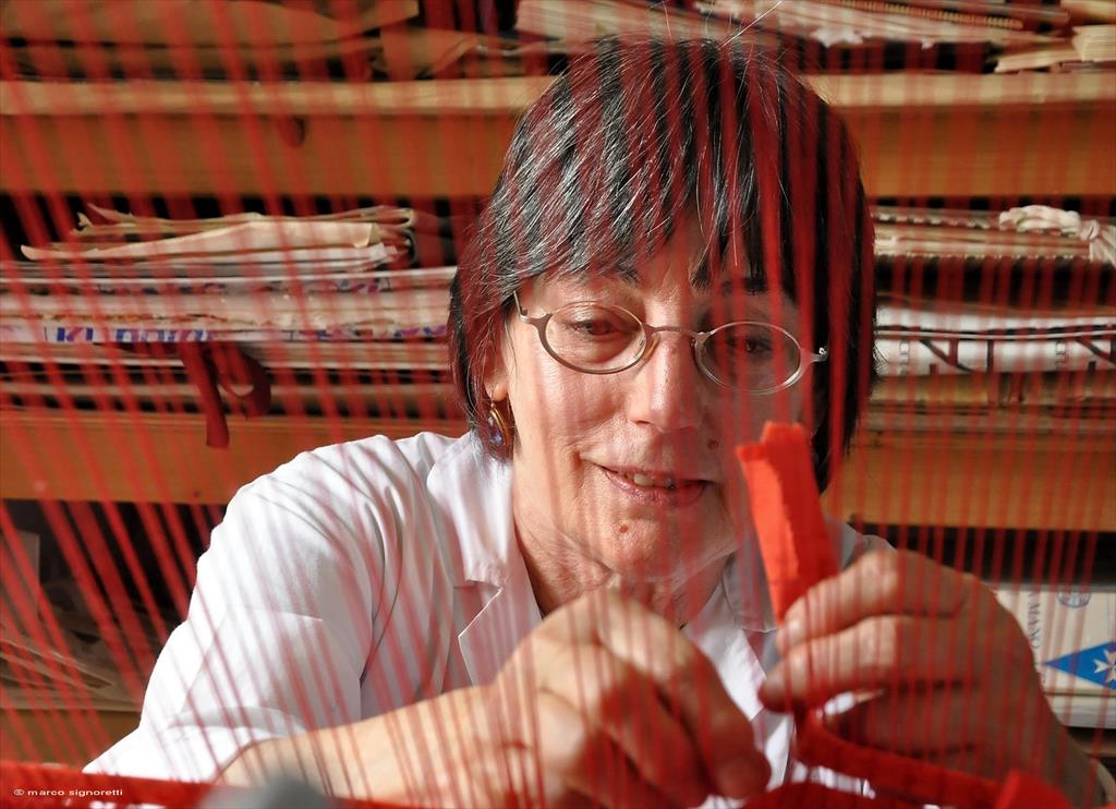 Si è inaugurata sabato scorso, 22 aprile, nella Galleria Officina d'arte e tessuti di Spoleto, la personale dell'artista eugubina Marilena Scavizzi, che presenta una selezionata serie di "arazzi" polimaterici, prevalentemente monocromatici nel primo dei due ambienti della galleria ("Piantamagica", "Erbaluna" e "l'Albero guardiano") e policromi nel secondo ("Segnoblu A", "Segnoblu B", "Codice" e "Vite") , dove fanno anche da quinta all'installazione degli elementi ceramici della "Citta' sottile".Il testo di Cesare Coppari rende prezioso ed indispensabile l'agile catalogo, offrendo una lettura chiara, puntuale e profonda delle opere proposte dalla Scavizzi, sovrapponendo il racconto critico al testo magico e poetico delle favole narrate sulla tela, in cui si combinano, con sapienza e tecnica, la tessitura, il ricamo e la stampa, insieme all'inserimento di elementi in ceramica, in corda e in vetro.Le immagini finali documentano la realizzazione dell'opera "vite" e sono state riprese nella casa-studio dell'artista.