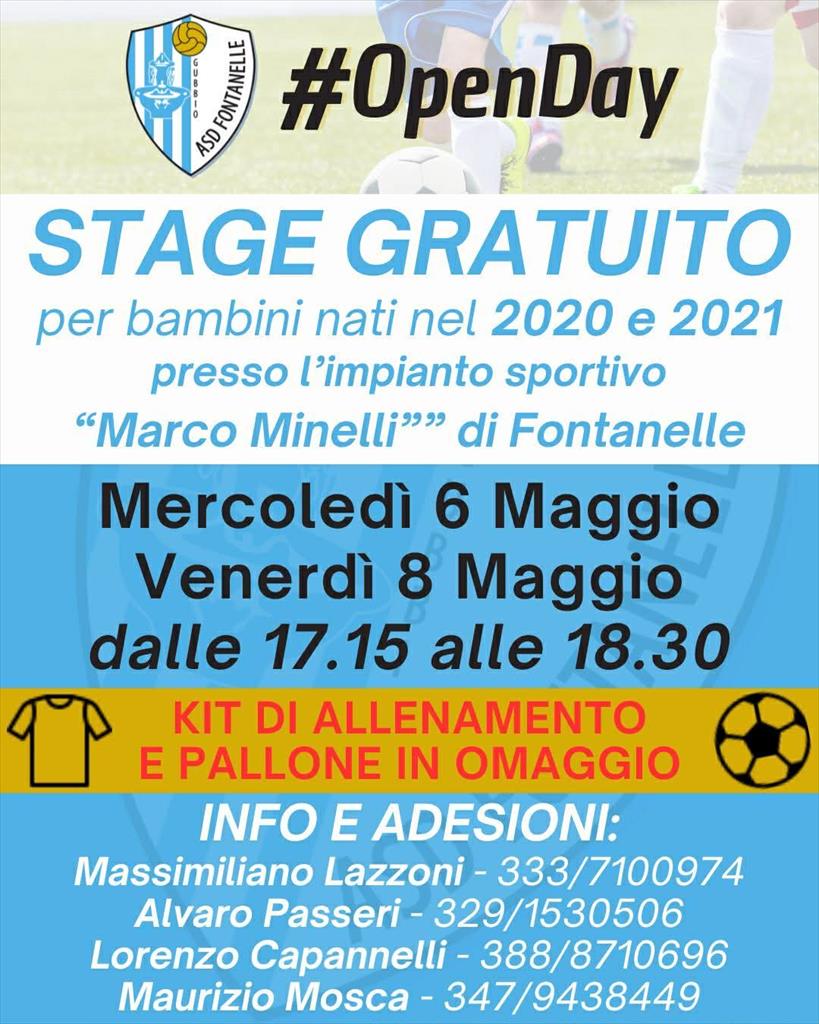 Stage gratuito per bambini nati nel 2020 e 2021 presso l'impianto sportivo "Marco Minelli" di Fontanelle, mercoledì 6 maggio e venerdì 8 maggio dalle 17.15 alle 18.30. Kit di allenamento e pallone in omaggio.