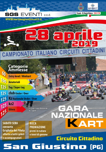 Domenica 28 Aprile tornano i Kart sul prestigioso circuito cittadino di San Giustino in una gara, alla sua 36° edizione, che si conferma vavevole per il Campionato Italiano Circuiti Cittadini. Il grande successo dell’edizioni precedenti, contraddistinte da una grandissima partecipazione di Pubblico e di Piloti, ha reso la Gara di San Giustino un’appuntamento atteso ed imperdibile per tutti gli appassionati. A garanzia di gare avvincenti e combattute è confermata la folta e storica presenza di Piloti locali, a cui, come sempre, si aggiungeranno molti altri Piloti esperti e provenienti da tutta Italia,. Le gare avranno inizio la mattina alle 9.30, con prove libere, qualifiche e batterie, mentre Il pomeriggio dalle 14.30 in poi sarà dedicato alle Finali.
