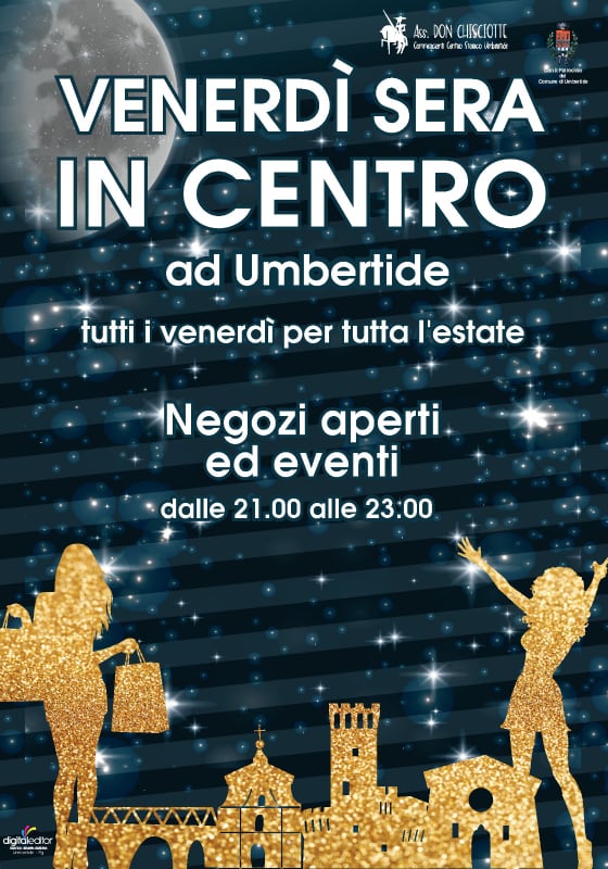 Umbertide: parte "Venerdi' in centro", negozi aperti la sera dei venerdì dell'estate per rivitalizzare il centro della città. Il tutto prendera' il via nella serata del 19 giugno.