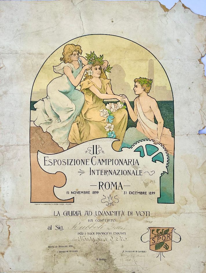 Un importante ritrovamento arricchisce il Museo Rubboli di Gualdo Tadino: riemerge il diploma della Medaglia d’Oro conferita alla manifattura nel 1899. Rinvenuto da Emanuela e Cristina Baldassini, eredi di Alberto Rubboli, il documento è di particolare valore storico, sia per il suo significato celebrativo, sia per le informazioni che restituisce sulla manifattura alla fine dell’Ottocento. Venne assegnato alla manifattura Rubbioli in occasione dell'Esposizione Campionaria Internazionale di Roma. Sarà definitivamente esposto al Museo Rubboli a partire dal 9 maggio in occasione della presentazione del volume che raccoglie gli atti del convegno tenutosi nel 2023 per celebrare i 150 anni della manifattura Rubboli.