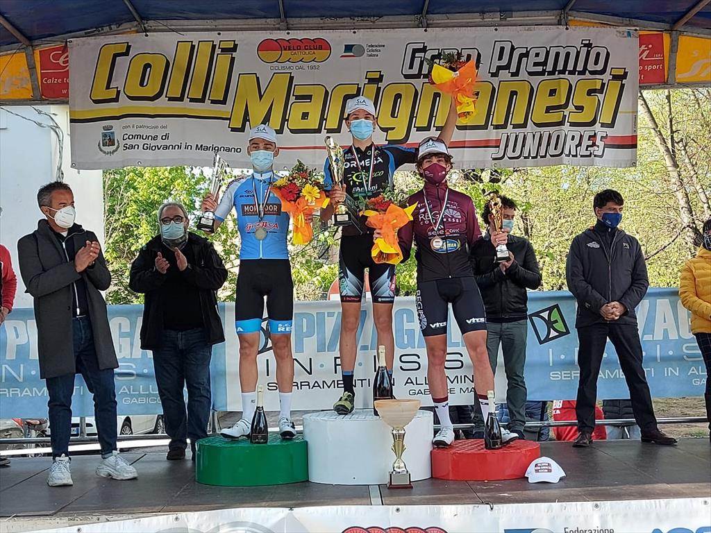 Grande prestazione di Giulio Pellizzari dell’Unione ciclistica Foligno che si è aggiudicato il gradino più in alto del podio nel 20° Gp Colli Marignanesi, Trofeo S&A, riservato alla categoria Juniores. Il portacolori dell’Uc Foligno è stato protagonista di una strepitosa gara e di un taglio del traguardo in solitaria. Sono stati 197 i ciclisti della star combat 2021,che hanno preso il via come da tradizione dal centro di San Giovanni in Marignano da Via Roma. Una gara di 96 km su un percorso da ripetere 6 volte e che ha visto, nel giro finale, affrontare il "Muro di Brescia" con pendenze al 15%. Al via per l’Uc Foligno: Francesco Vignini, Giacomo Mattoli Presenzini, Vincenzo Manco, Samuele Silvestri, Stefano Nicoloso e Giulio Pellizzari. Il circuito, inizialmente, si è presentato senza difficoltà importanti, con una salita centrale e molti cambi di pendenza. Sin dalla partenza gli atleti dell’Uc Foligno si sono subito messi in evidenza controllando nel migliore dei modi la corsa. La gara ha subito una svolta intorno al 44° Km quando Pellizzari ed altri tre atleti hanno dato luogo alla prima fuga di giornata. Gli atleti sono stati poi riassorbiti dal gruppo alla fine del 3° giro. Al quinto giro, intorno al 65° km, Giulio con altri 4 compagni, lungo un tratto del circuito in salita, ha sbaragliato la concorrenza continuando poi la fuga in solitario. Gli ultimi 40 chilometri sono stati una cavalcata trionfale per l’atleta folignate, classe 2003, con il vantaggio da parte del Pellizzari di quasi un minuto e mezzo, nonostante la reazione compatta del gruppo all’inseguimento, che poi è diventato di oltre 30 secondi al traguardo. Pellizzari è stato anche premiato con il Granpremio della montagna a punti, per essere transitato per primo sul Muro di Brescia (salita con pendenze superiori al 15%) durante l’ultimo giro. Grande soddisfazione per il presidente Moreno Petrini, i direttori sportivi al seguito della gara, Sandro Settimi e Massimiliano Gentili, coadiuvati dalla dottoressa Silvia Baronci dello staff medico. Completano il podio al secondo posto Luigi Castellani dell’Asd Sc Reda Mokador e al terzo posto Lorenzo Pellegrini della Valdarno Regia Congressi.