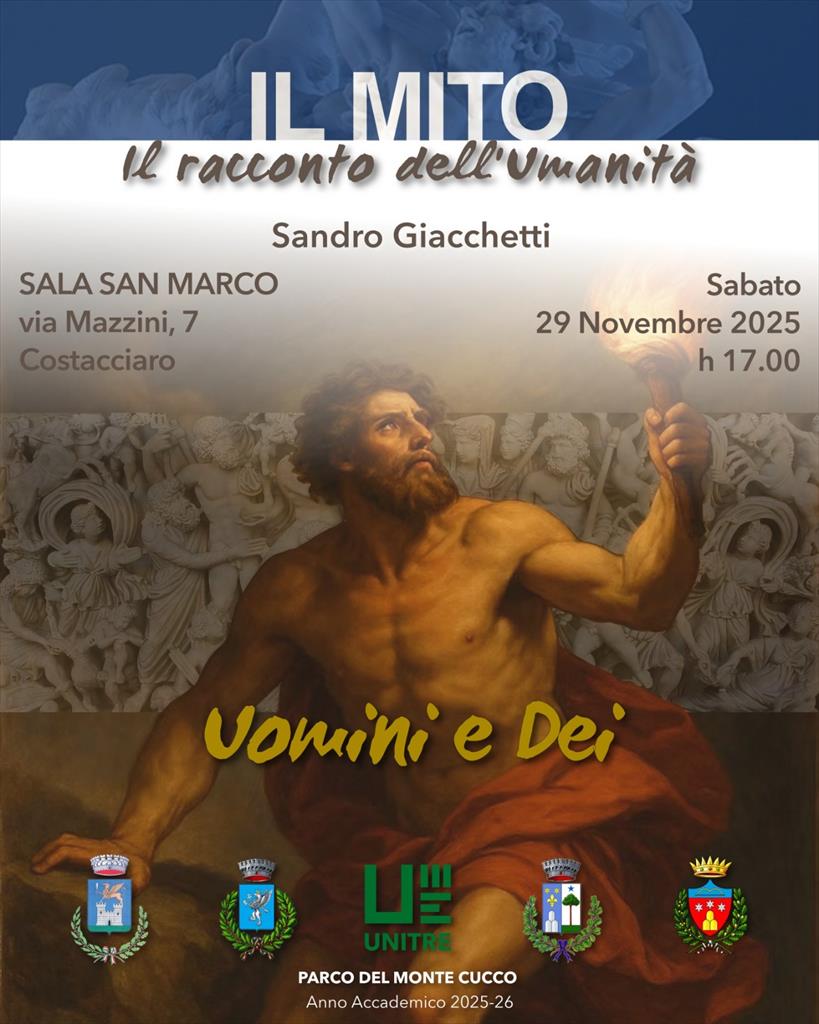 L'Unitre Parco del Monte Cucco dà il via a un nuovo ciclo di lezioni interamente dedicato aIl Mito. L'appuntamento è fissato per domani sabato 29 Novembre, alle ore 17:00, a Costacciaro. L'iniziativa mira ad esplorare il tema del Mito, analizzando le sue connessioni con la letteratura, la filosofia e la scienza. Il Mito, infatti, è stato fin dall'antichità un racconto, sacro o tradizionale, utilizzato dalle civiltà per spiegare l'origine del mondo, dei fenomeni naturali, delle istituzioni sociali e, più in generale, della condizione umana. Le narrazioni incentrate su dei, eroi o figure soprannaturali non solo hanno trasmesso conoscenze e valori, ma hanno anche contribuito a dare un senso e un ordine alla realtà percepita.
