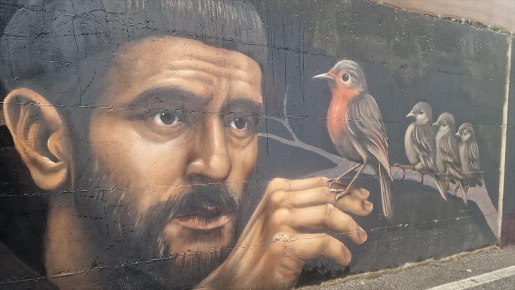 E’ stata inaugurata con una cerimonia ufficiale dal Sindaco di Valfabbrica Enrico Bacoccoli, l'opera pittorica murale dedicata a San Francesco d'Assisi, realizzata da Matteo Fronduti, sita in via Osteria lungo il Sentiero Francescano, nel punto in cui i pellegrini provenienti da Assisi vedono per la prima volta l'immagine di Valfabbrica nel cammino verso Gubbio. Al taglio del nastro erano presenti: il Presidente della Provincia di Perugia Massimiliano Presciutti, il Custode del Sacro Convento Fra Marco Moroni e il parroco di Valfabbrica Don Antonio Borgo, Veronica Cavallucci vice sindaca di Assisi e Paola Agabiti consigliera Regionale. “Una via dedicata alla pace dei popoli – ha detto il sindaco Bacoccoli – speriamo che questo murale possa essere un simbolo importante di pace. Matteo, il nostro artista, è nato a Valfabbrica e questo ci inorgoglisce particolarmente”. “Un saluto speciale a Don Antonio e Padre Marco. Faccio i miei complimenti - ha detto Presciutti - all’artista Fronduti per questa opera che rimarrà lungo la via di Francesco. Credo che non sia una casualità, ma penso che sia un segno, il fatto che il sindaco Bacoccoli da tempo abbia stabilito questa data per l’inaugurazione e che oggi il Papa è venuto ad Assisi sulla tomba di Francesco. La comunità di Valfabbrica con questa opera abbracci tutta la via di Francesco”. Questa opera murale si estende per 130 metri ed è interamente realizzata con bombolette spray. Su questo muro era presente da 10 anni un’altra opera, sempre dedicata a Francesco ma con il sindaco ha deciso di non restaurarla e realizzarne un’altra. “Mi sono concentrato sull’aspetto più umano di Francesco - ha detto Matteo Fronduti -, sui gesti terreni. La prima opera è: “il ricordo della guerra” a seguire “La chiamata di San Damiano”, “La spogliazione”, “Il bacio al lebbroso”, “Il lupo”, “Francesco e il Sultano”, “Francesco che parla agli uccelli” e infine “Francesco che scrive le sue memorie”. Ho scelto uno stile ispirato a Caravaggio, con forti contrasti di chiaro e scuro, dove la luce è protagonista. È uno stile pittorico tendente al realistico, nelle proporzioni e nei colori”.