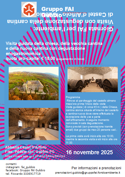 Per informazioni e prenotazioni: prenotazioni.gubbio@gruppofai.fondoambiente.it