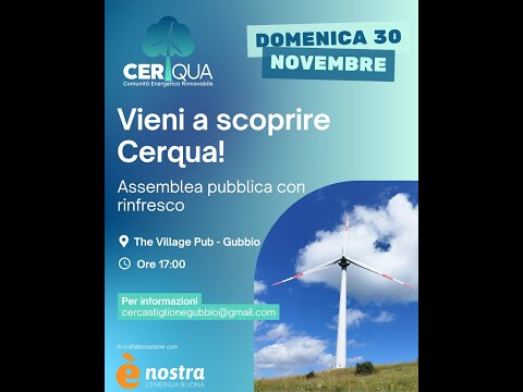A Gubbio parte CERqua, prima comunità energetica eolica in Italia